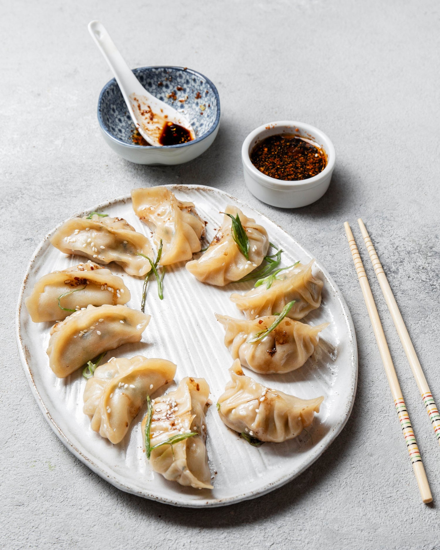 - Serve the gyoza hot with soy sauce, rice vinegar, or Jimoto Foods Lemon Myrtle and Yuzu Ponzu Sauce.