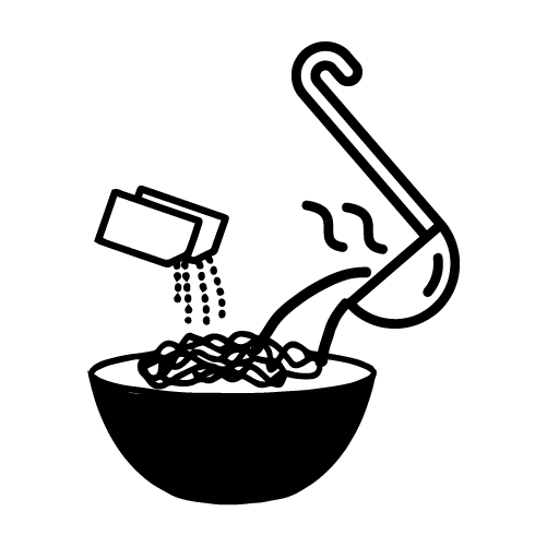 - Ramen: Wheat flour, corn starch, mineral rock salt