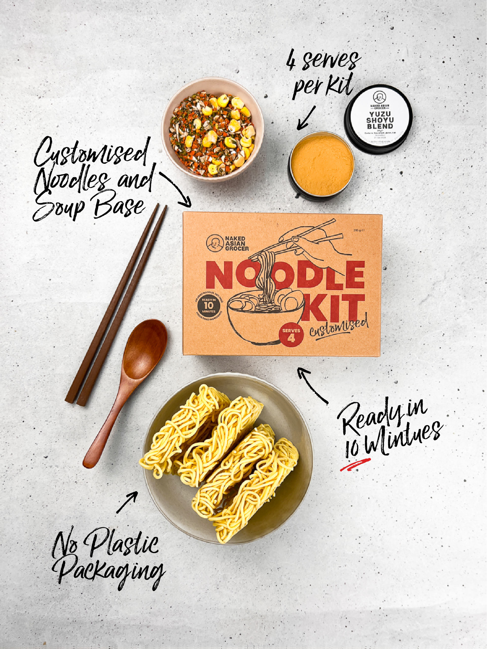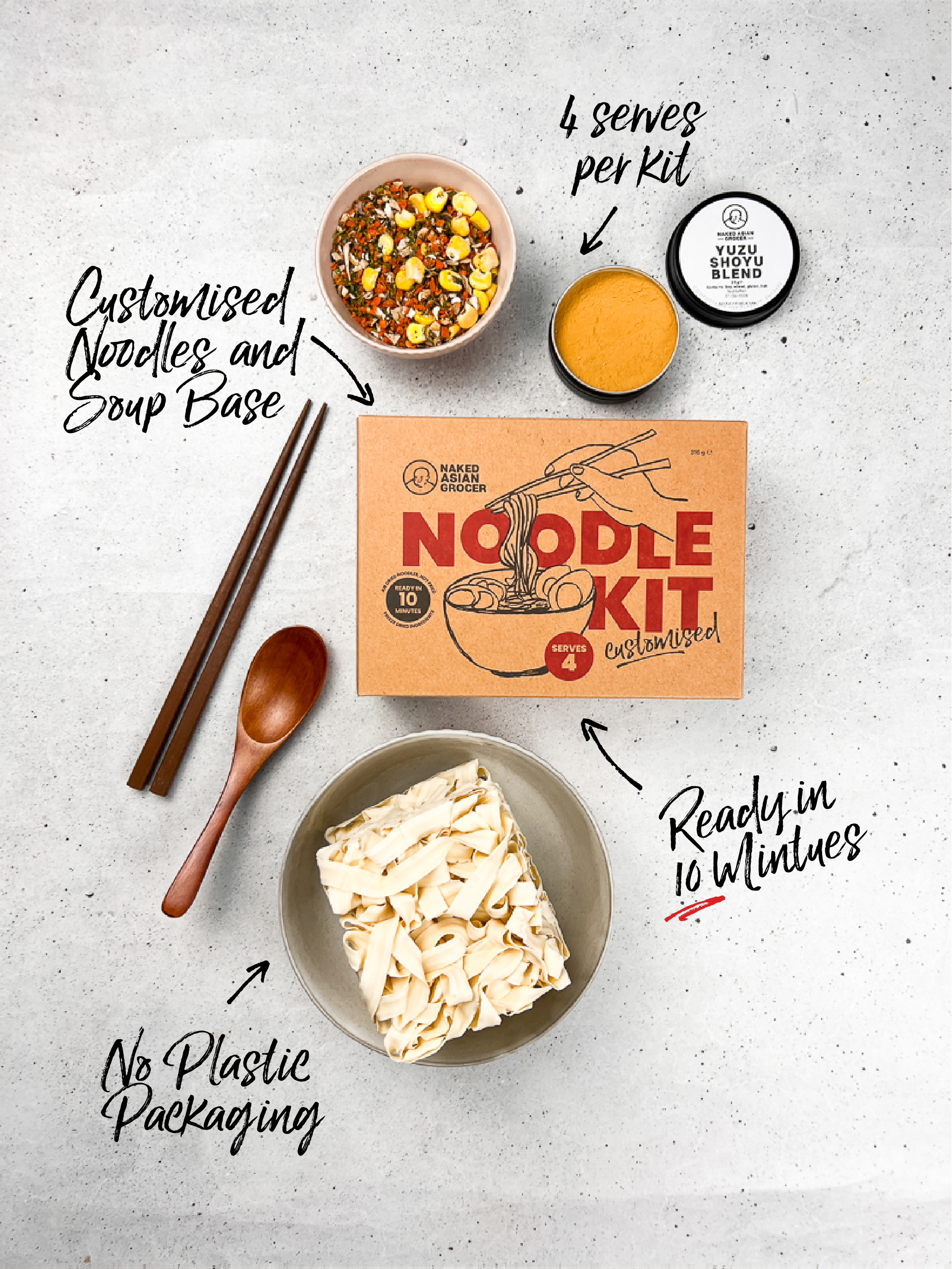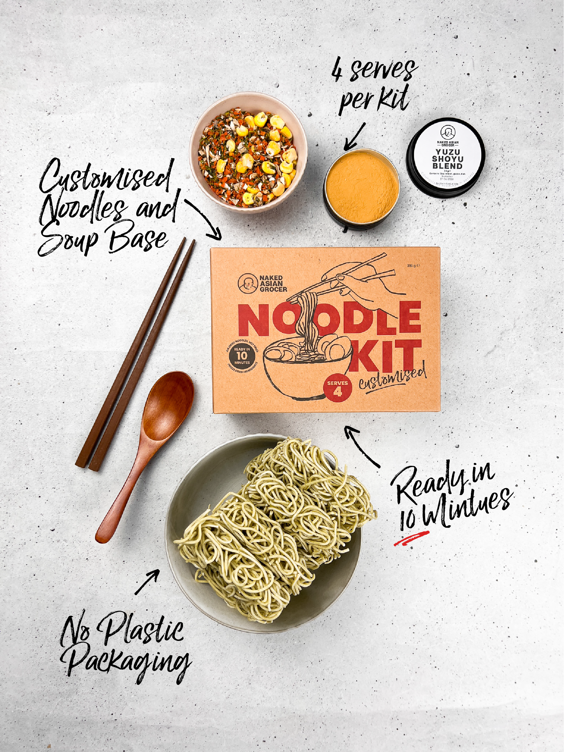 The ramen kit with yuzu shoyu surprised me with it's flavour, authenticity & wholesomeness with minimal effort. I had zero food in the house - just the ramen kit, beancurd knots, shiitake mushrooms & fried shallots from NAG. It hit the spot & inspired me to be more creative (prepared) for my next ramen bowl - adding a boiled egg & fresh spring onion (& ??) would take it to the next level, and still be quick & easy meal.