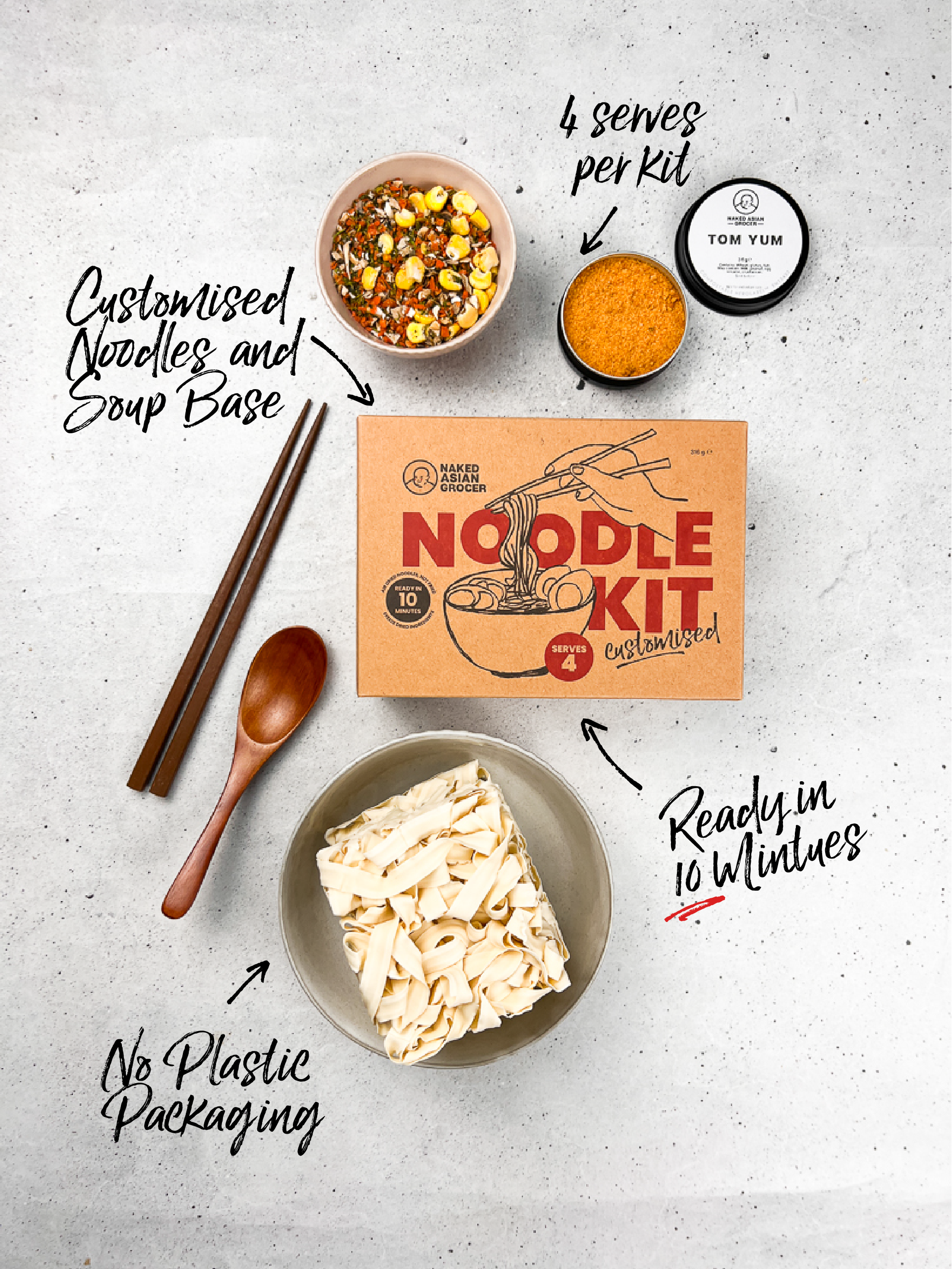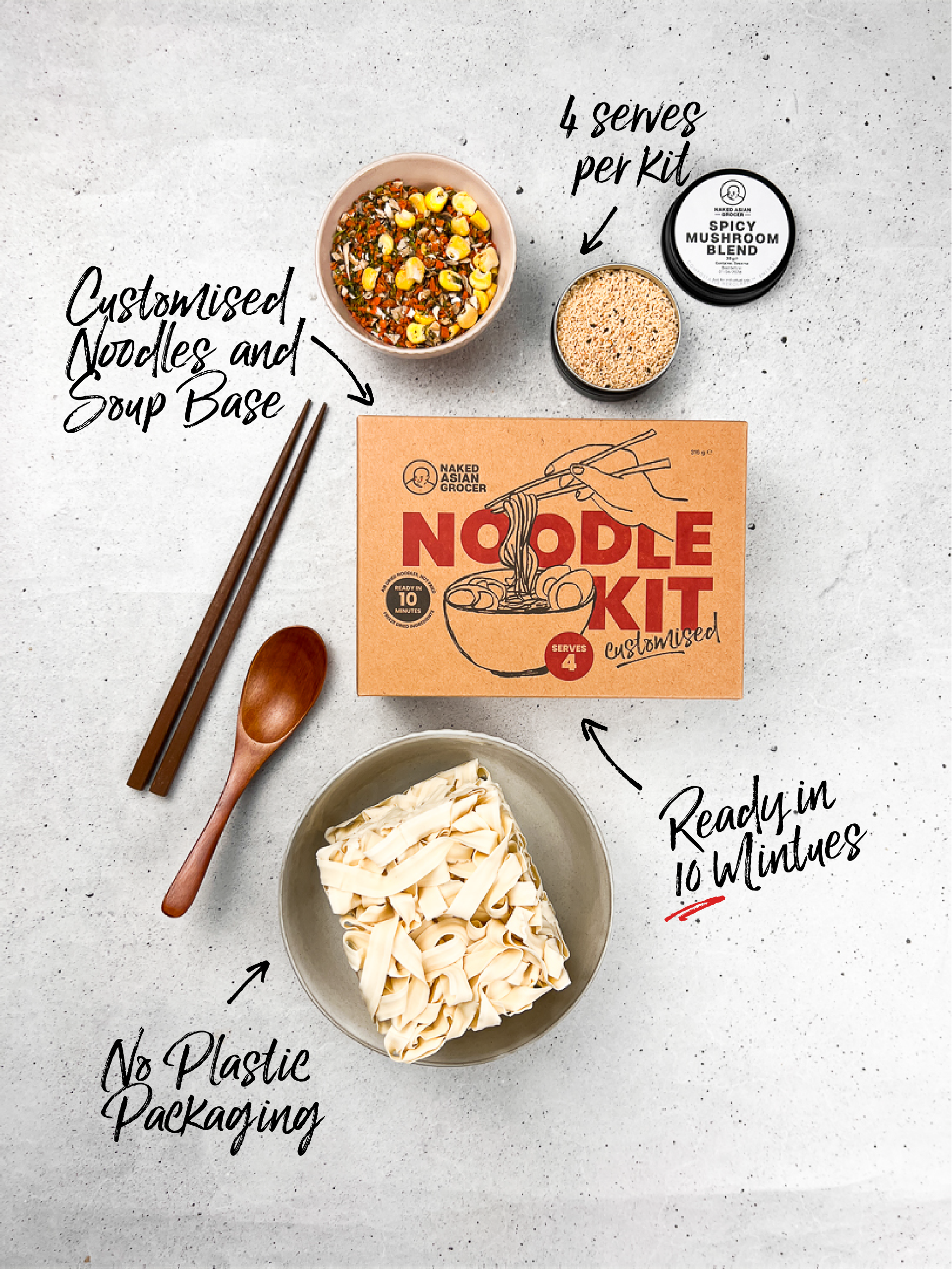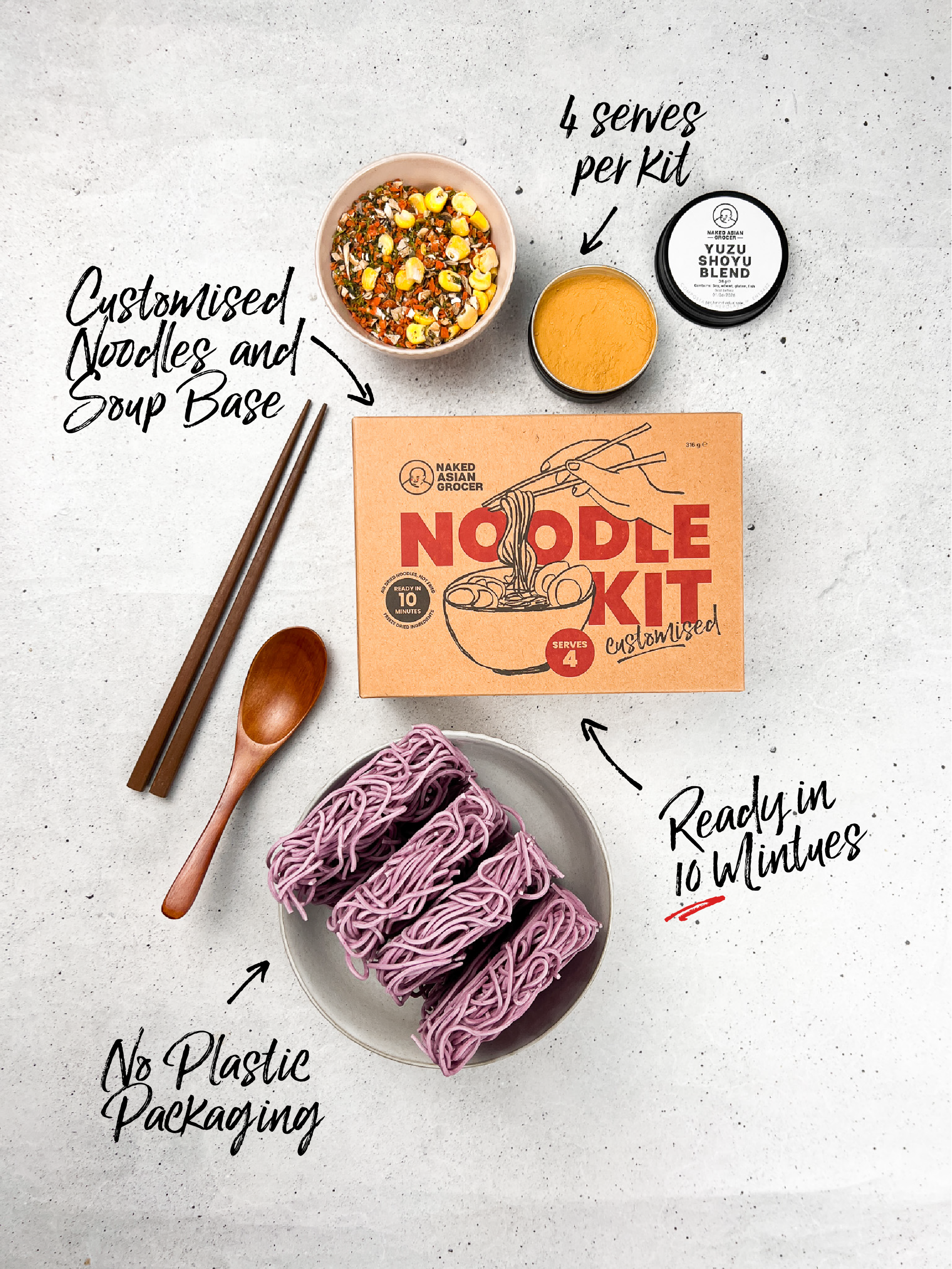 The ramen kit with yuzu shoyu surprised me with it's flavour, authenticity & wholesomeness with minimal effort. I had zero food in the house - just the ramen kit, beancurd knots, shiitake mushrooms & fried shallots from NAG. It hit the spot & inspired me to be more creative (prepared) for my next ramen bowl - adding a boiled egg & fresh spring onion (& ??) would take it to the next level, and still be quick & easy meal.