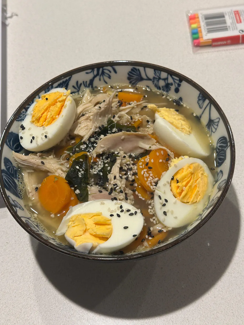 Mixed everything according to instructions, but this time more veg, chicken and mixed the additives, added the mushroom spice with the miso.