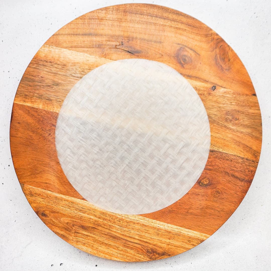 Used to wrap delicious Vietnamese rolls. Simply dunk rice paper sheets in warm water quickly and place down on a mat or a plate. Place your filling at the top of the sheet, fold down the top edge, followed by the sides and then roll it downwards. Work quickly as the paper gets sticky as soon as it's wet. Made from rice starch, tapioca starch, salt and water.