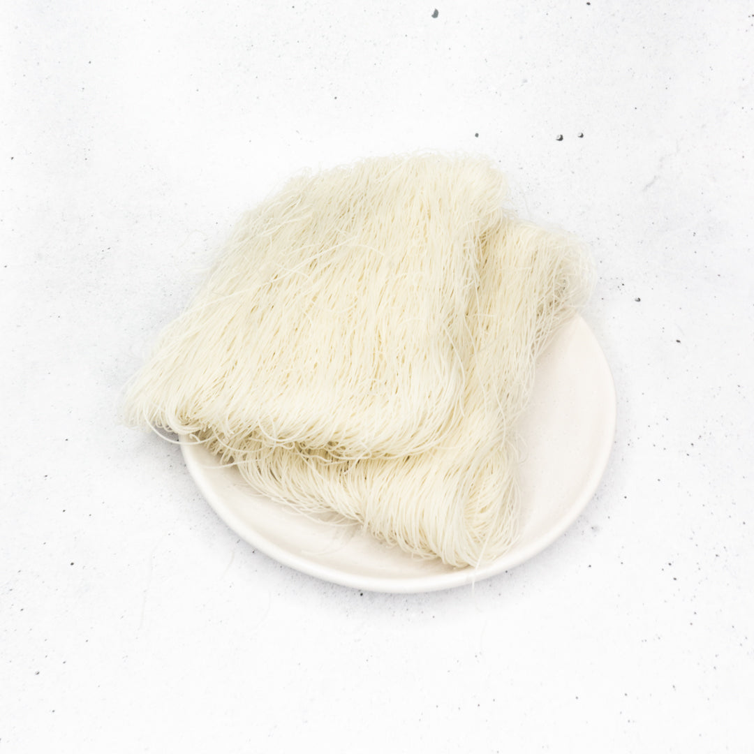 A thin form of rice noodles, Rice Vermicelli is sometimes referred to as rice sticks or bee hoon. Typically used in soups, stir-fries, spring rolls and salads. Rice vermicelli only need to be soaked in hot water, instead of boiled, before they’re ready to use in stir-fries or other dishes. Bring a medium pot of water to a boil, remove the pot from the heat, and add the noodles. Let the noodles soak until they’re tender, about 5 minutes. Drain and pat dry.